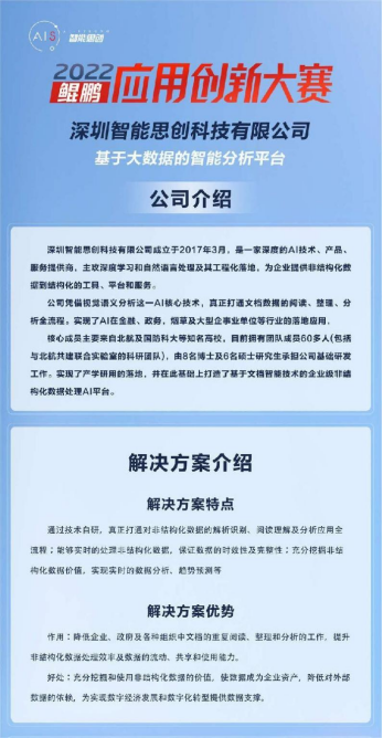 本次,不朽情缘电子游戏官网 “大数据智能分析平台” 在 鲲鹏应用创新大赛荣获二等奖, 这是行业对我司产品的高度 肯定, 也 是 我司深耕文档智能 领域的突出成果。 未来不朽情缘电子游戏官网也将继续深固公司产品的基础技术和行业应用研发,使之成为市场上具有技术、行业双重壁垒的产品。