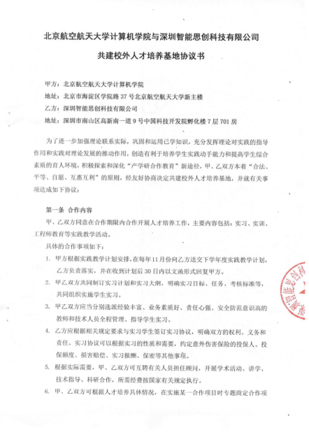 9月13日,不朽情缘电子游戏官网与北京航空航天大学签订了共建校外人才基地协议。双方同意在合作期限内合作开展人才培养工作,主要内容包括∶实习、实训、工程师教育等实践教学活动,积极探索和深化“产学研合作教育”新途径。
